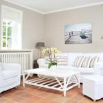 Bei der Ausstattung dieser Haushälfte wurde an nichts gespart: Die Holzeinbauten sind edel und im Sylter Stil. Im Erdgeschoss setzen die antiken Terracottaböden genauso einen Akzent wie die abgeschlossene hübsche Landhausküche in edlem Grau. Der Wohn-/...