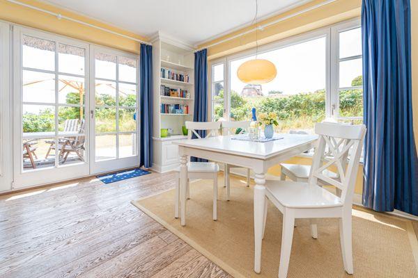 Sie erwartet eine exklusiv ausgestattete Ferienhaushälfte unter Reet in traumhafter Lage. Die Sauna, der Kamin und ein großer Garten stehen Ihnen zur Verfügung. Beide Küsten sind fußläufig erreichbar. Eine Wallbox ist vorhanden.