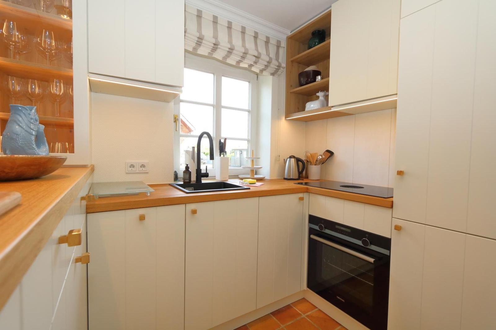 Die gut ausgestattete Küchenzeile erleichtert die Selbstversorgung mit einem Elektro-/Gasherd, Kühlschrank, Kaffeemaschine, Toaster und Gefriermöglichkeit. Für zusätzlichen Komfort sorgt der Wasserkocher sowie Geschirr und Besteck. Ein gemütlicher Kamin oder Kachelofen lädt zum Entspannen ein.