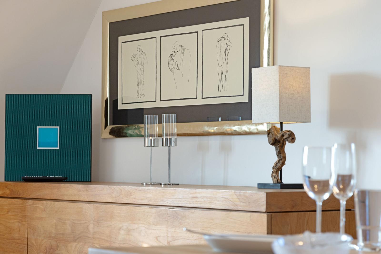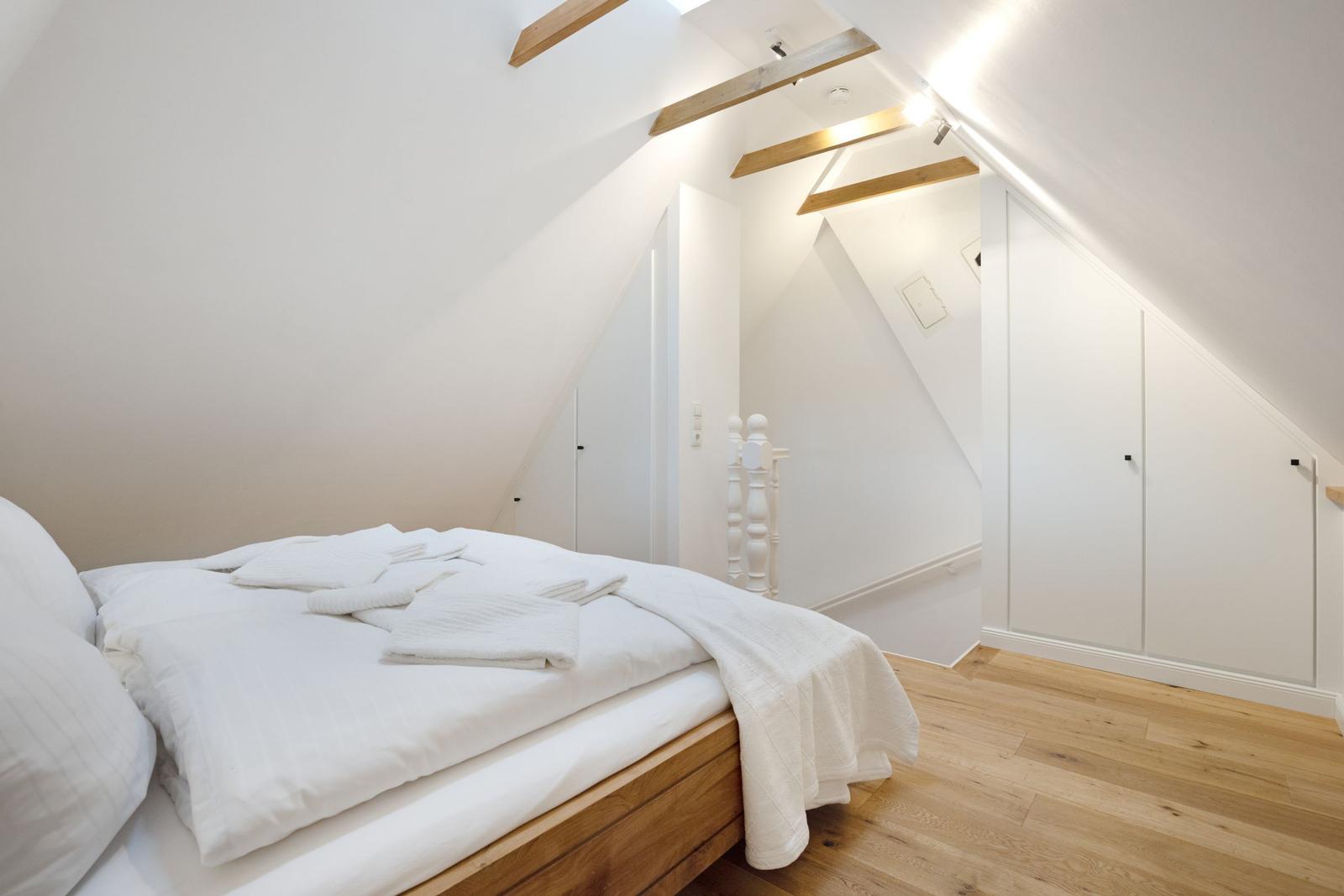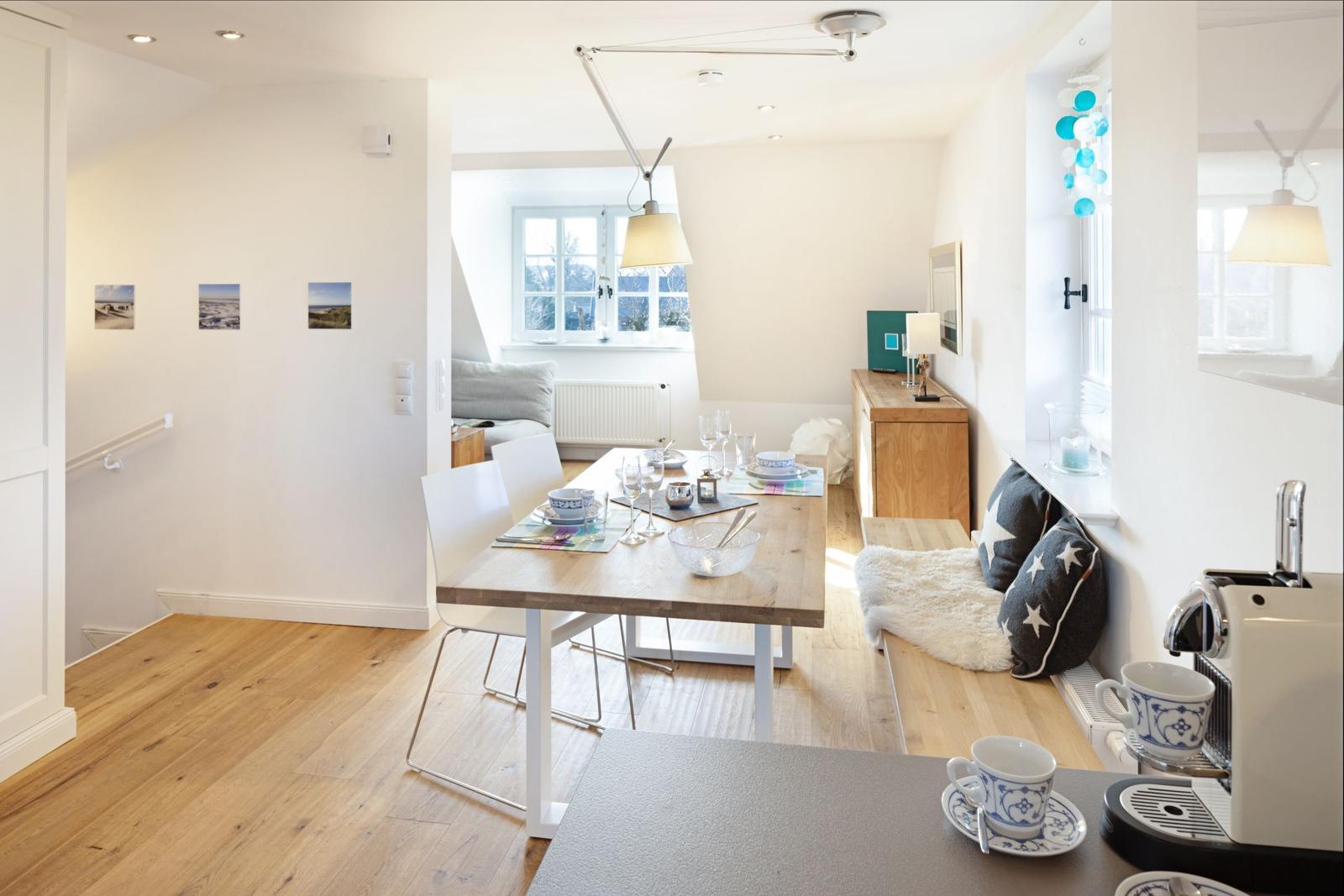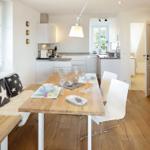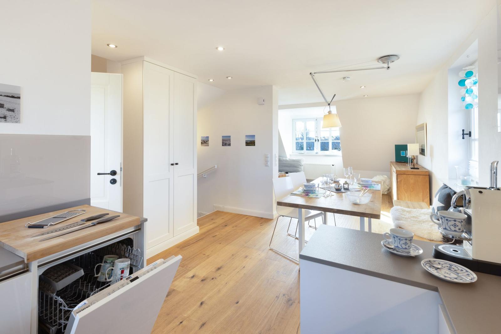 Die Ferienwohnung bietet eine moderne und komfortable Ausstattung, ideal für einen entspannenden Aufenthalt. Sie verfügt über ein Schlafzimmer mit einem Doppelbett sowie ein Wohnschlafzimmer, das zusätzlichen Platz zum Entspannen bietet. Die offene Küche ist mit einem Elektro-/Gasherd, Backofen, Kühlschrank und Geschirrspüler ausgestattet und ermöglicht es, die eigenen kulinarischen Kreationen zuzubereiten. Eine Kaffeemaschine, Toaster und Espressomaschine stehen ebenfalls zur Verfügung.