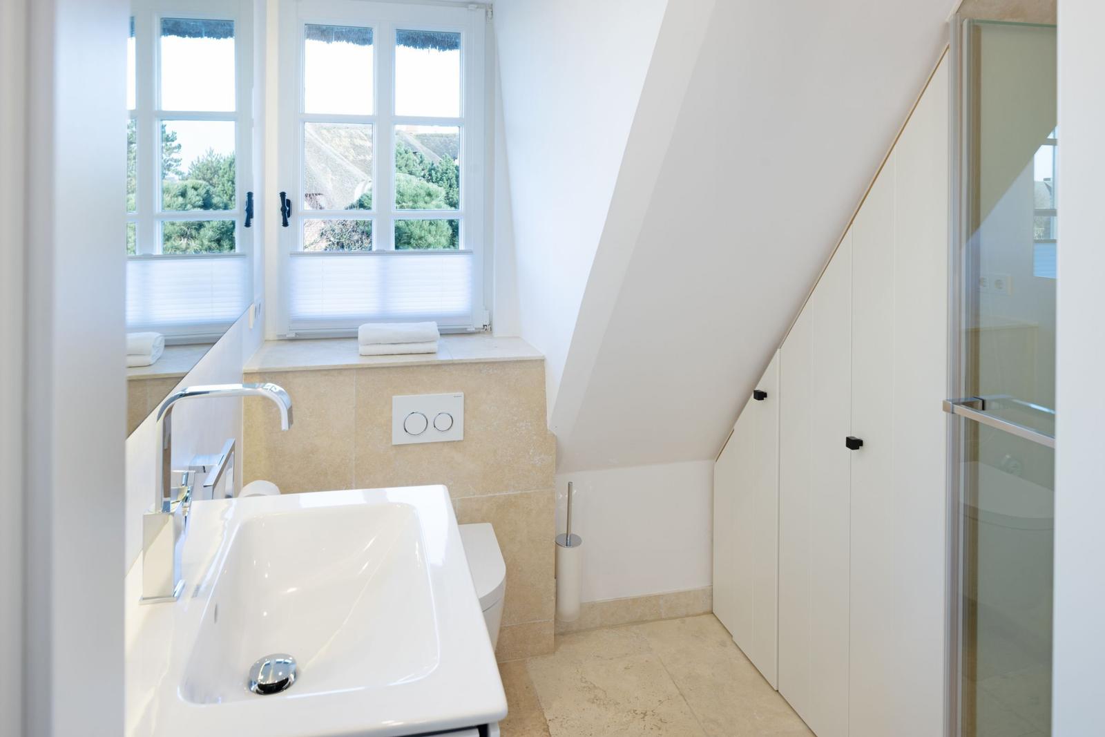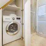 Das Badezimmer mit Fenster und Duschbad ist funktional gestaltet und bietet einen Haartrockner. Der Wohnbereich lädt mit Sofa und Esstisch zum Verweilen ein und ist mit TV ausgestattet. WLAN mit 100 MBit/s sorgt für schnelle Internetverbindung. Zu den weiteren Annehmlichkeiten zählen Waschmaschine, Wäschetrockner, Parkplatz sowie Sicherheitseinrichtungen wie Rauchmelder und Feuerlöscher. Eine ideale Unterkunft für entspannte Tage.