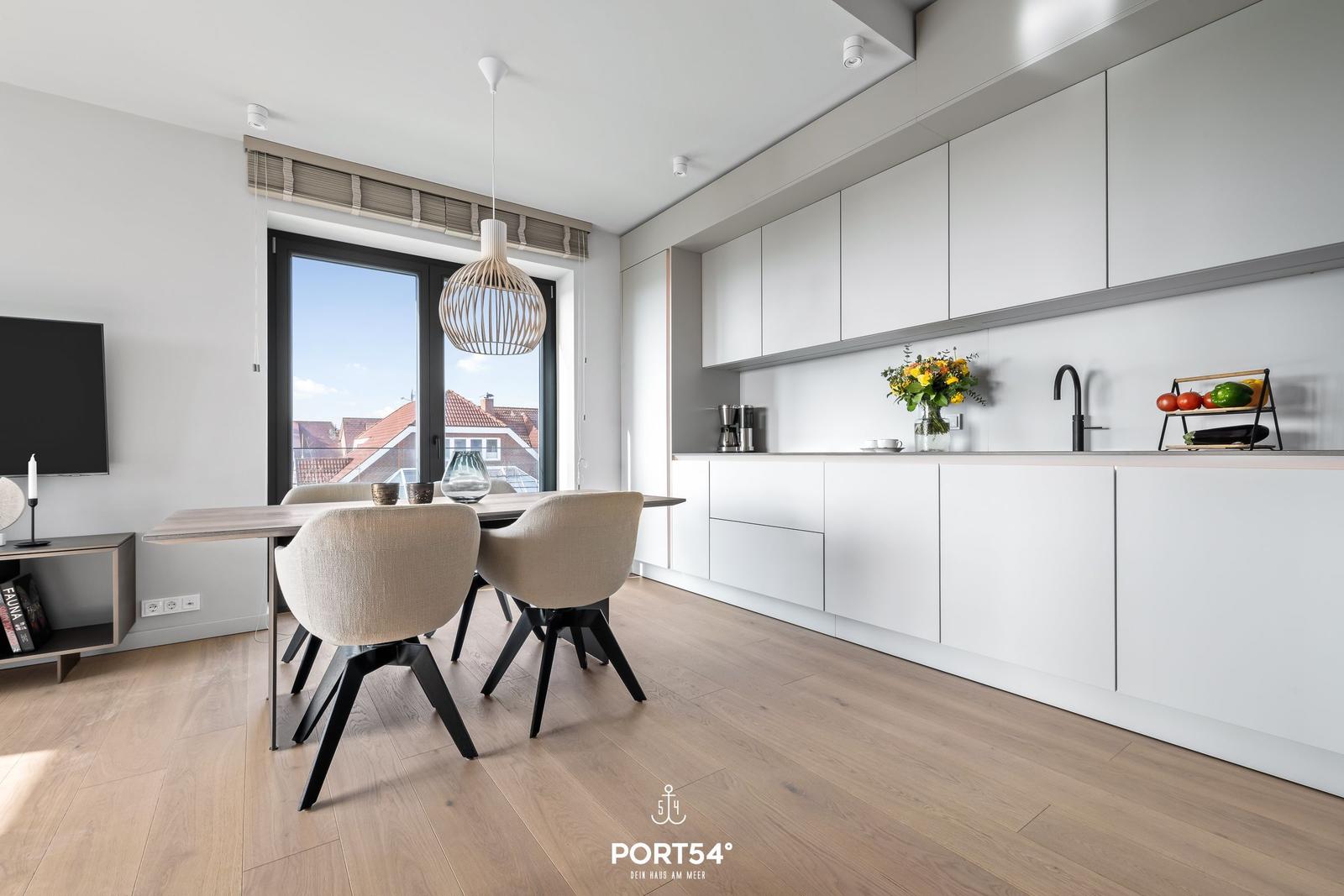 Die Wohnung verfügt über zwei stilvolle Schlafzimmer, die zum Entspannen und Erholen einladen. In einem der beiden ist ein Doppelboxspringbett der Marke Schramm(180x200cm), während in dem anderen Schlafzimmer ein Schlafsofa (160x200cm) für Sie zur Verfügung steht. Ein modernes Badezimmer mit einer bodengleichen Dusche bietet zusätzlichen Komfort und Luxus während Ihres Aufenthalts. Das Herzstück der Oceanview Suite ist der großzügige Wohnbereich, der offen zur voll ausgestatteten SieMatic Küche gestaltet ist. Hier finden Sie alles, was Sie für die Zubereitung Ihrer Mahlzeiten benötigen, einschließlich eines Induktionsherds, Backofens, Geschirrspülers und Weinkühlschranks. Außerdem finden Sie in der Küche einen Quooker, damit lässt sich problemlos heißes Wasser, sowie Sprudelwasser erzeugen. Der Essbereich bietet Platz für ein gemeinsames Essen und blickt auf den gemütlichen Wohnraum mit einem offenen Ethanol-Kamin, der für eine behagliche Atmosphäre sorgt.