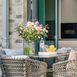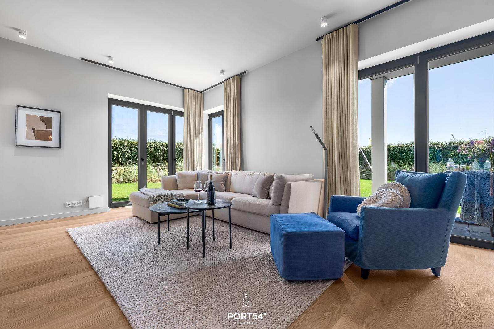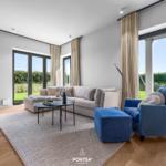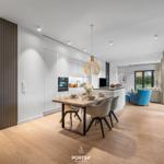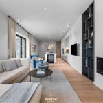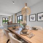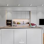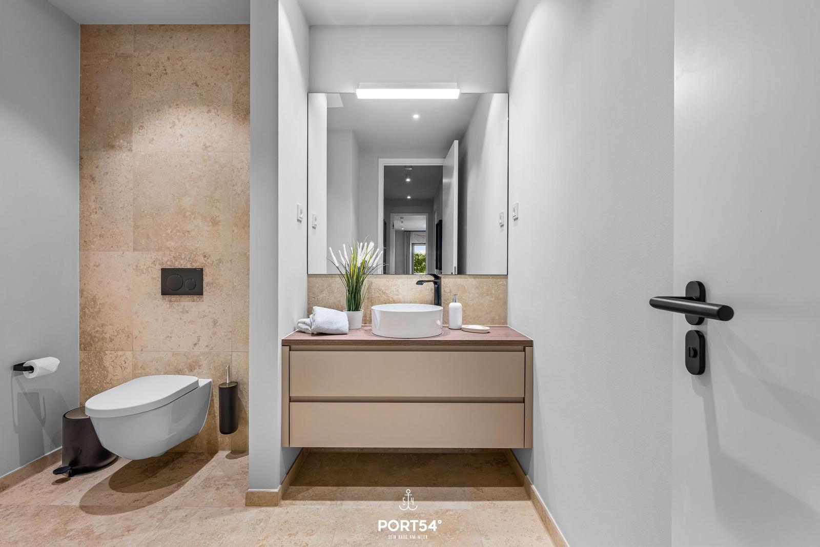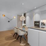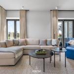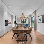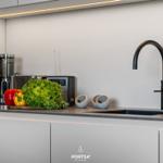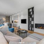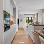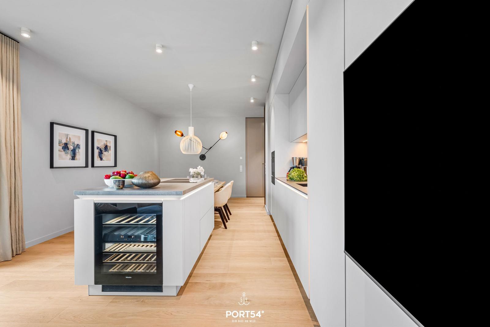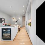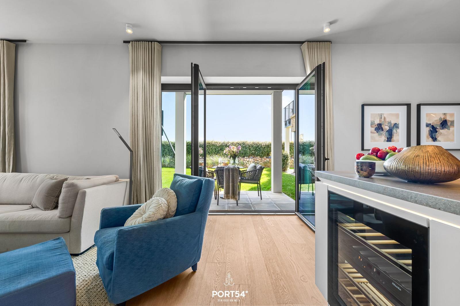 Ein offener Wohnbereich mit großzügiger Sofaecke, Ethanol Kamin und Esstisch lädt zum Verweilen ein und bietet einen perfekten Ort für gesellige Abende. Die voll ausgestattete offene Küche von SieMatic punktet mit modernen Geräten wie einem Induktionsherd, Backofen, Kühlschrank, Spülmaschine und einem Weinkühlschrank. Hier können Sie kreative Gerichte zubereiten oder einfach das Frühstück auf der Terrasse genießen, während Sie die frische Meeresbrise einatmen. Außerdem finden Sie in der Küche einen Quooker, damit lässt sich problemlos heißes Wasser, sowie Sprudelwasser erzeugen.