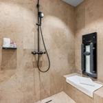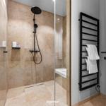 Das Schlafzimmer bietet nicht nur ein gemütliches Doppelboxspringbett der Marke Schramm (180x200cm), sondern ist auch mit einer Fußbodenheizung ausgestattet, die für Wohlfühlatmosphäre sorgt. Das elegante Badezimmer mit einer großzügigen bodengleichen Dusche und integriertem Infrarotpaneel runden das Angebot ab.