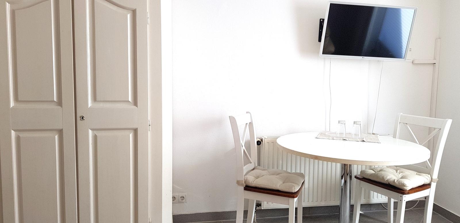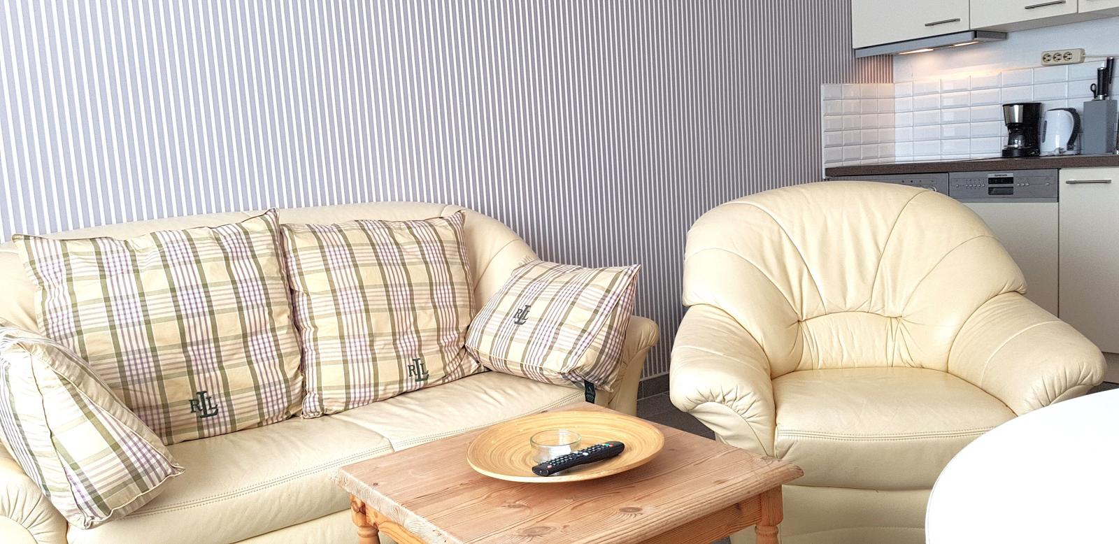 Es handelt sich um eine sonnige, gemütliche 2-Zimmer-Wohnung im Erdgeschoss mit Terrasse. Sie haben ein gemütliches Wohnzimmer mit Küchenzeile, TV, Telefon, ein Duschbad und eine Schlafnische, Wlan ist frei.
