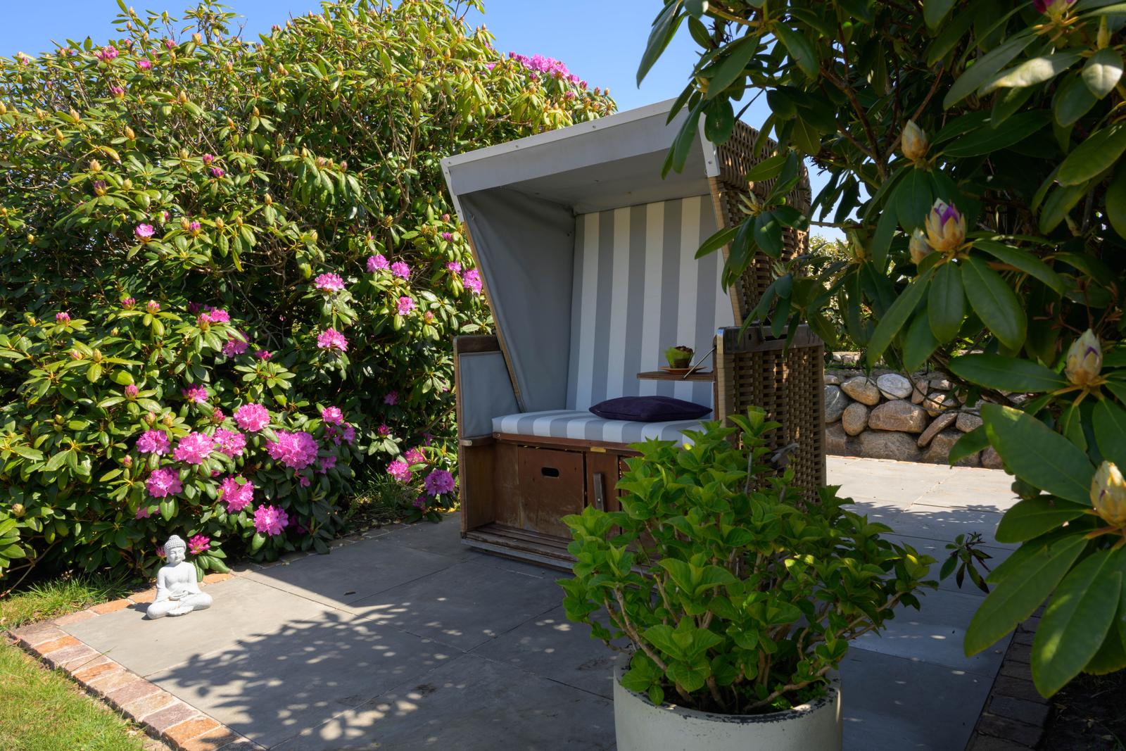 Das Haus steht auf einem 800qm² großen, eingewachsenen Grundstück, das sich in einer Sackgasse befindet. Es gibt im Erd- und Obergeschoss noch je eine weitere Ferienwohnung. Haus Westsee liegt in unmittelbarer Nähe zum Dorfteich, dem Fahrradweg Westerland-List, der Friesenkirche, dem Steinzeitgrab Denghoog und dem Golfplatz. Die Ferienwohnung ist ideal als Ausgangspunkt für Wanderungen in die Braderuper Heide, zur Uwe Düne oder zum Roten Kliff.
