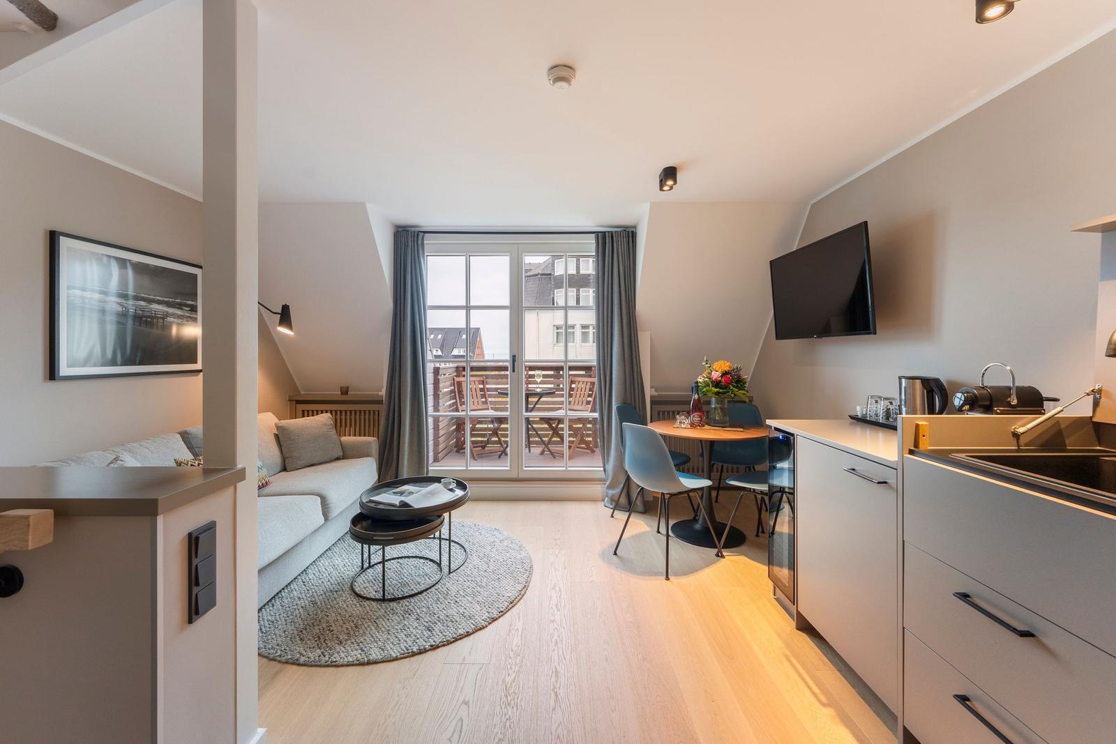 Die charmante Ferienwohnung in Wenningstedt für 2 Personen bietet Meerblick, einen Balkon mit Sonnenuntergängen und eine zentrale Lage, nur 150 Meter vom Strand entfernt – ideal für romantische Auszeiten.
