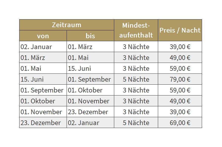 | Angebot vom | Mindestaufenthalt | Ersparnis |