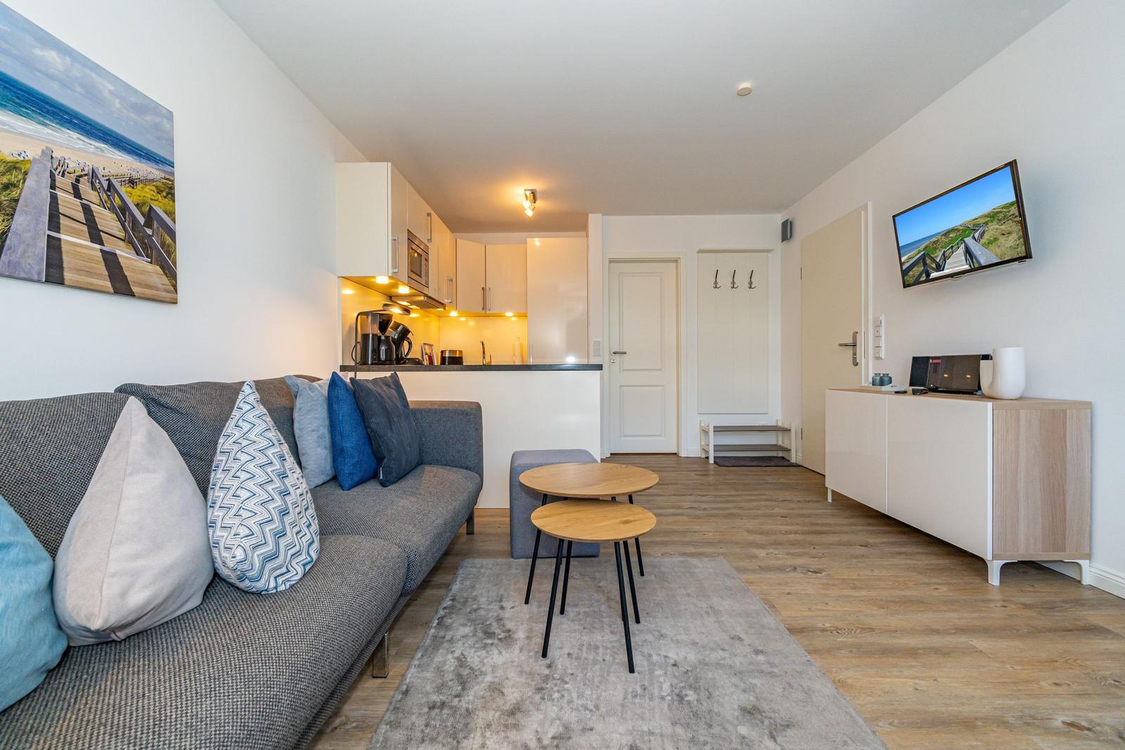 Die lichtdurchflutete Ferienwohnung für bis zu 4 Personen an der Grenze von Westerland und Wenningstedt bietet Komfort, einen Balkon und kostenlose Busfahrkarten für Erkundungen der wunderschönen Insel Sylt.