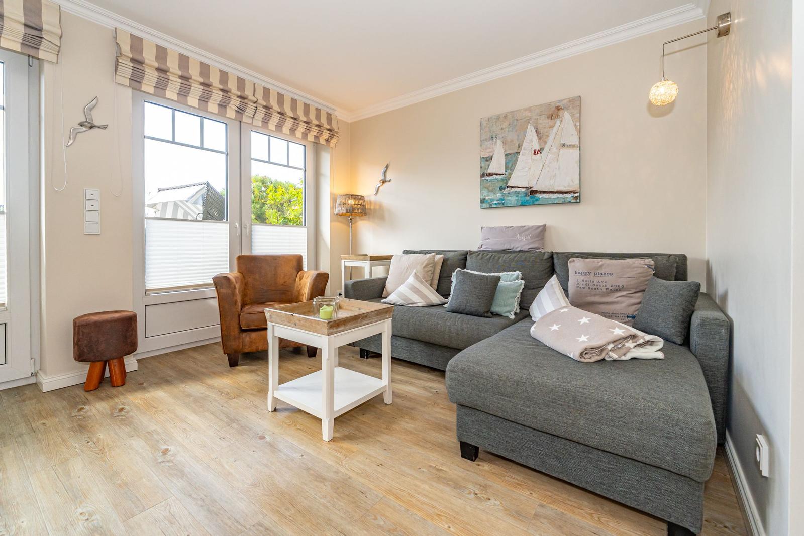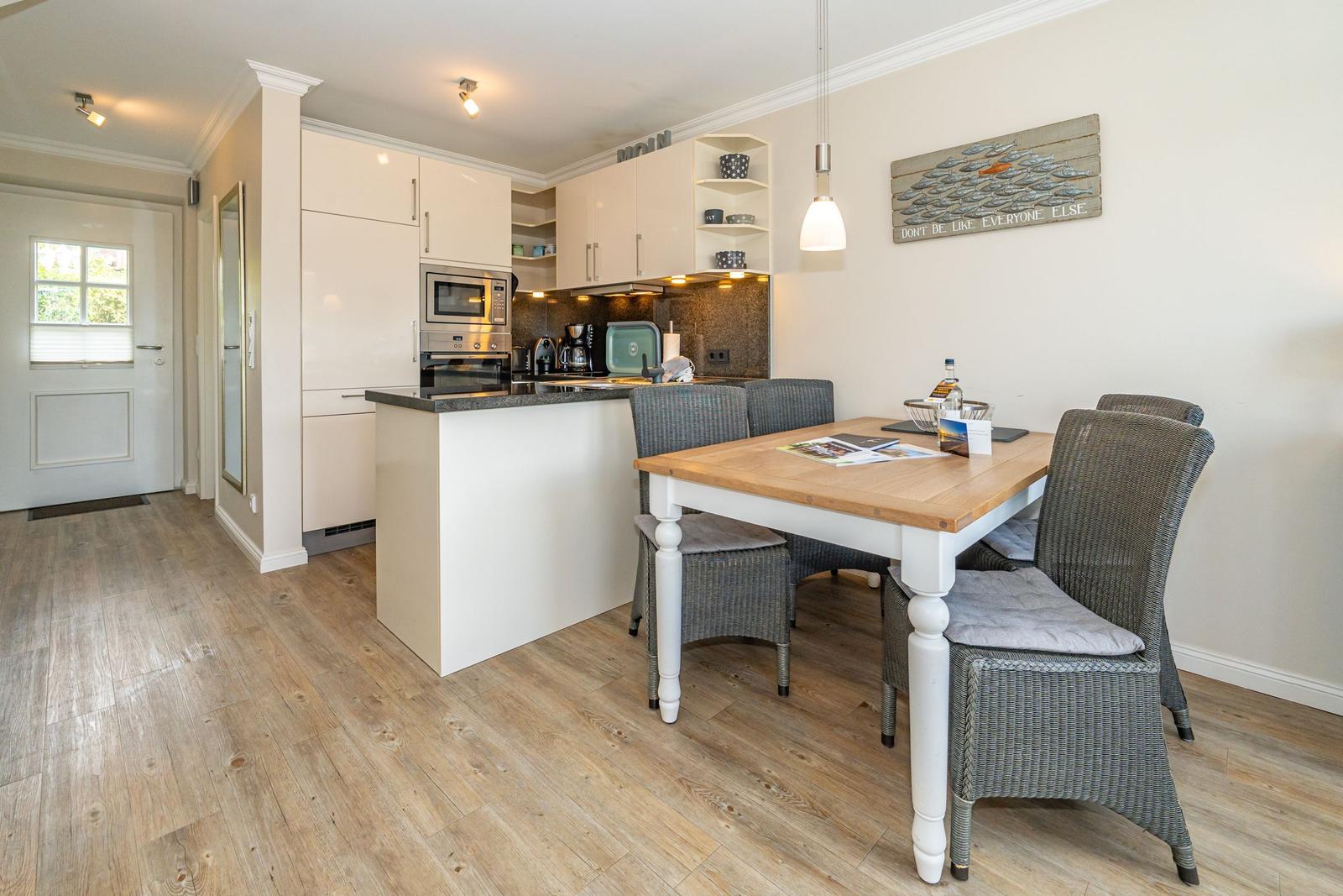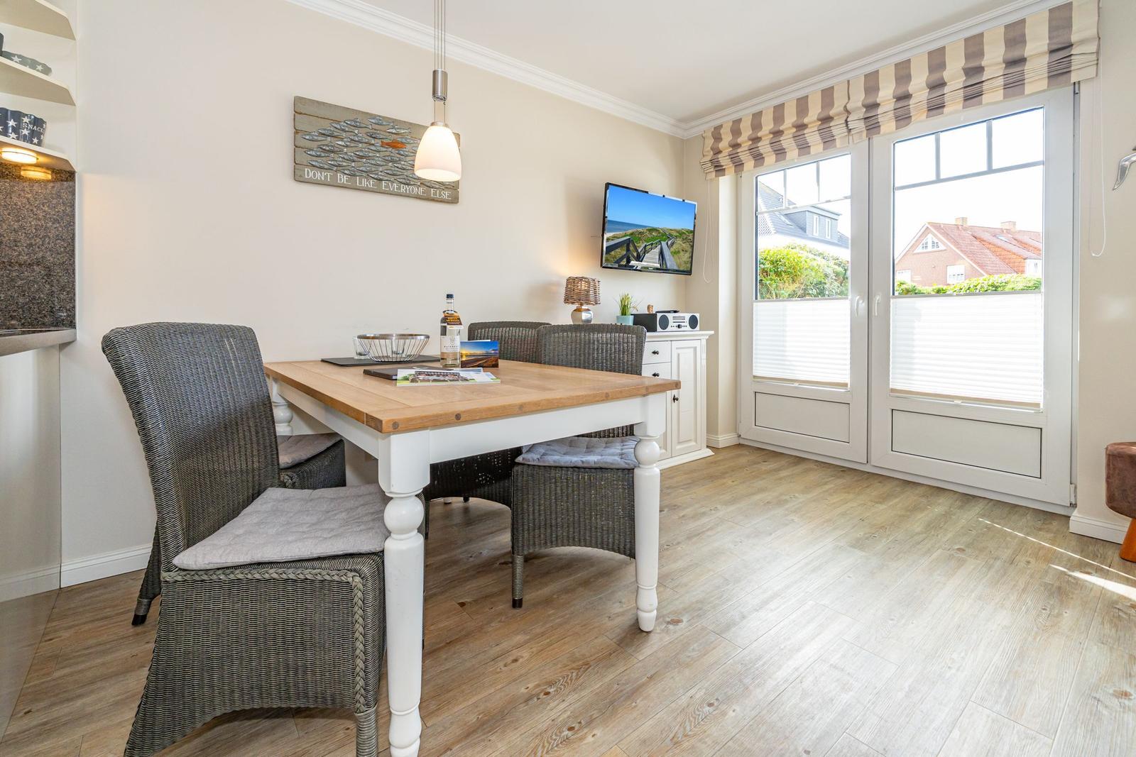 Die moderne Ferienwohnung in Westerland, nur 400 m vom Strand entfernt, bietet Platz für bis zu 4 Personen und überzeugt mit eigener Terrasse, zwei Schlafzimmern und optimaler Ausstattung für erholsame Tage.