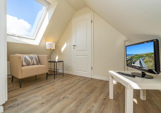 Die Ferienwohnung Godewind App. 5 befindet sich an der Ortsgrenze von Westerland und Wenningstedt, nur 700 Meter vom Sandstrand entfernt. In der näheren Umgebung sind ein Bäcker, ein Supermarkt, ein Fahrradverleih und eine Bushaltestelle fußläufig erreichbar. Diese Lage ermöglicht es den Gästen, die Umgebung bequem zu erkunden. Die Nordsee bietet zahlreiche Freizeitmöglichkeiten wie Strandspaziergänge, Radtouren sowie den Besuch historischer Sehenswürdigkeiten und attraktiver Küstenorte. Die Anreise gestaltet sich unkompliziert, da die Unterkunft über einen PKW-Stellplatz verfügt. Zudem steht ein Fahrradständer für vier Räder bereit, ideal für aktive Urlauber, die die malerische Umgebung auf zwei Rädern erkunden möchten.
