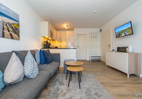 Die ideale Ferienwohnung für bis zu 4 Personen an der Nordsee: modern, mit eigener Terrasse, Sauna und nur 700 Meter vom Sandstrand entfernt – Entspannung pur wartet!