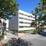 Schlafzimmer mit Doppelbett, große Schrankfront.