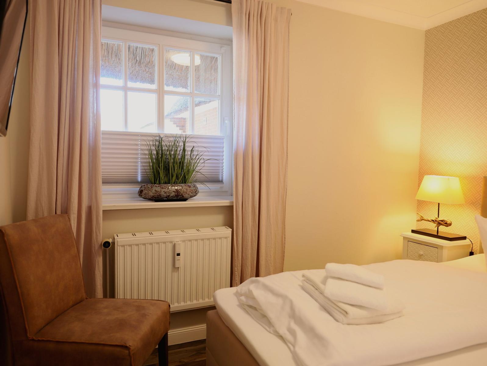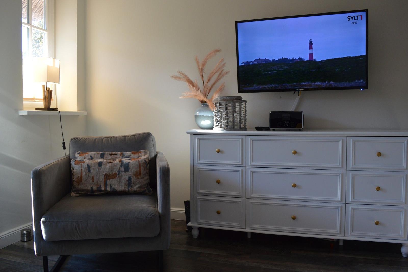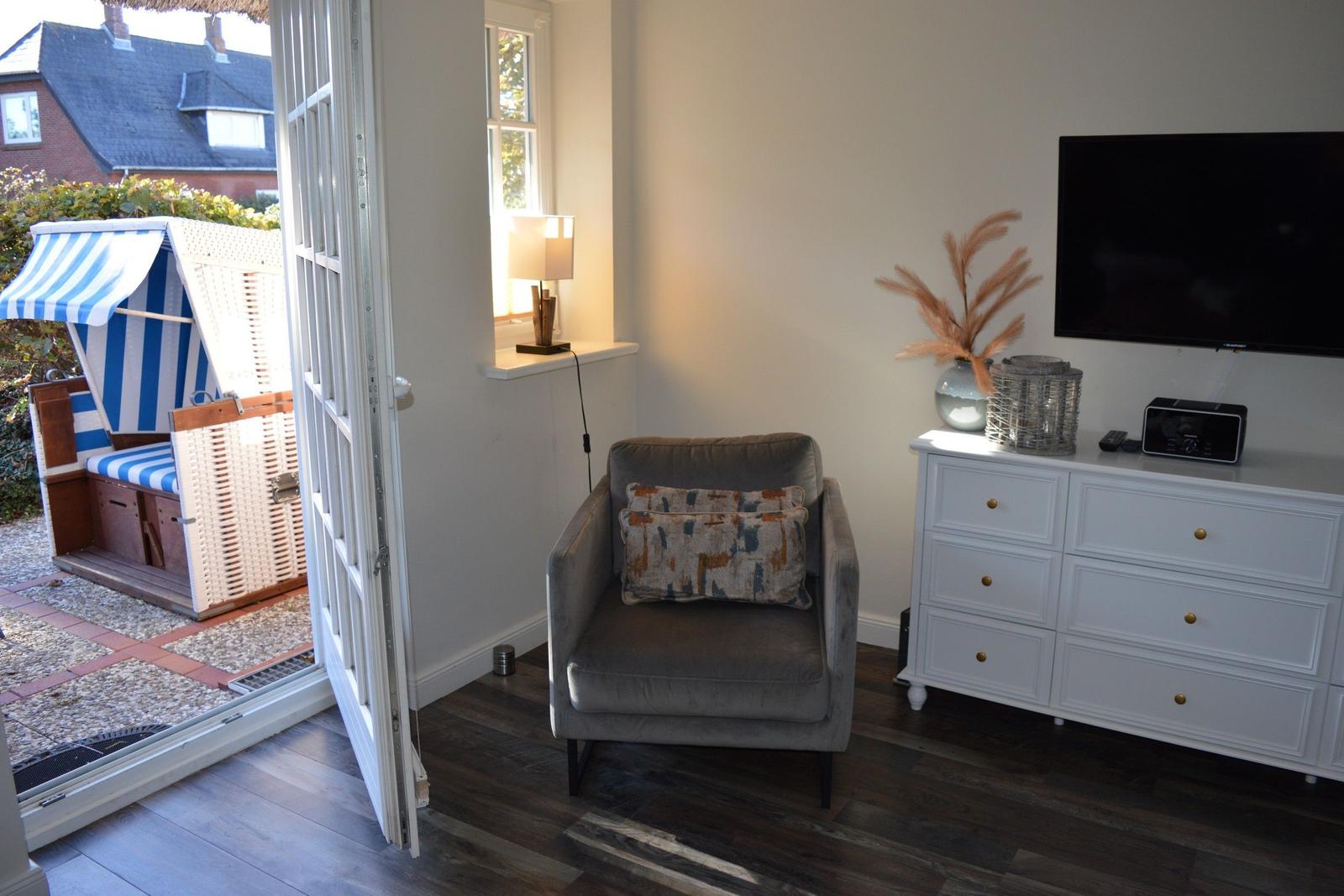 Geschmackvoll eingerichtete Zwei-Zimmer-Ferienwohnung mit schöner Südterrasse und eigenem Strandkorb. Fußläufig zum Ortskern von Westerland in einem typischen Reetdachhaus gelegen können Sie hier Sylt wunderbar erleben. Ideal geeignet für zwei Gäste.