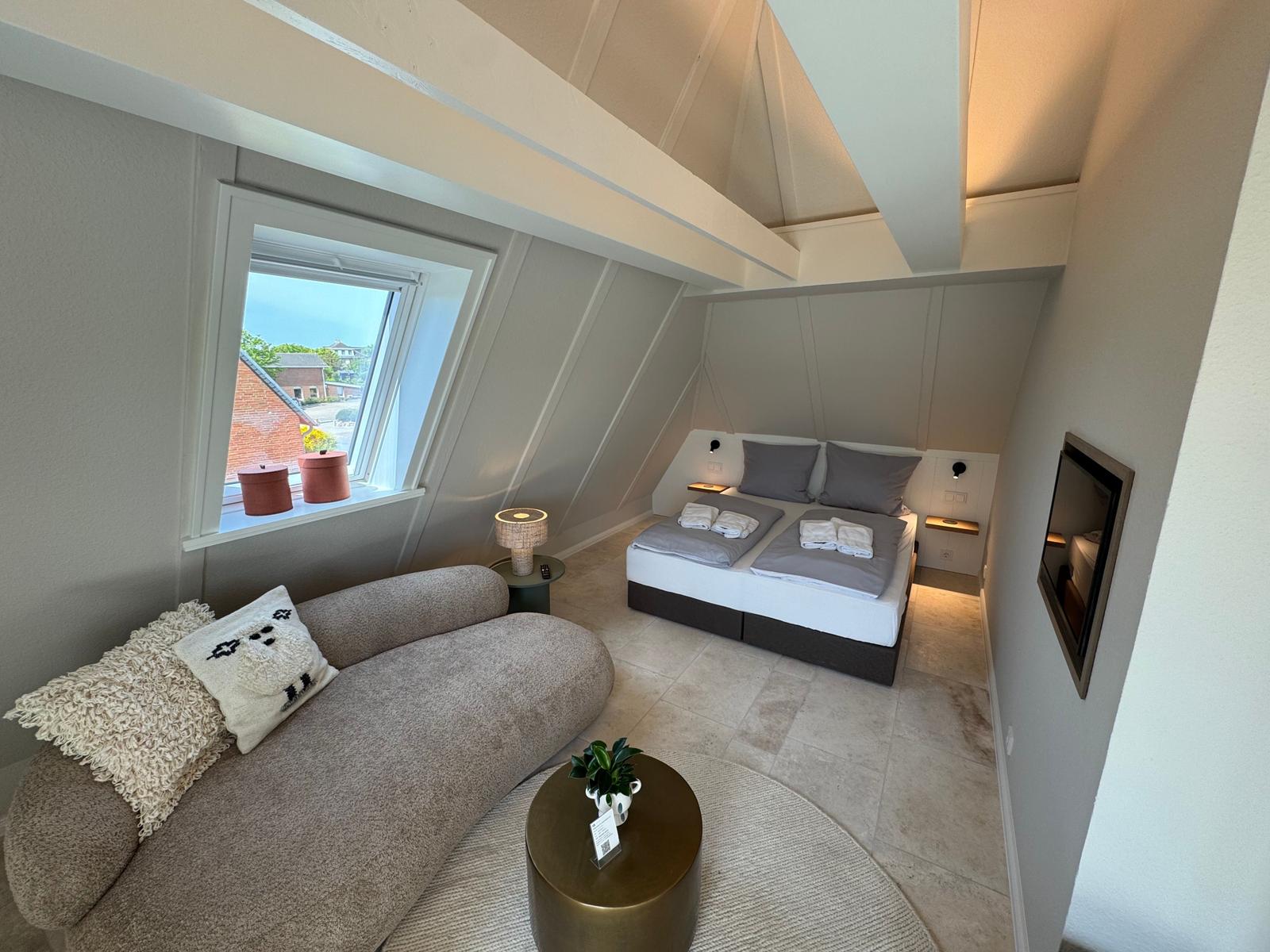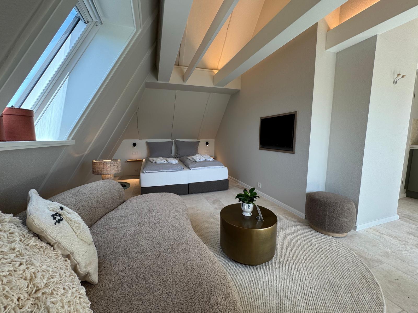 Das gemütliche Loft Appartement Luv im Haus Katrin in Westerland ist mit allem ausgestattet, was sie für einen erholsamen Urlaub auf Sylt benötigen.