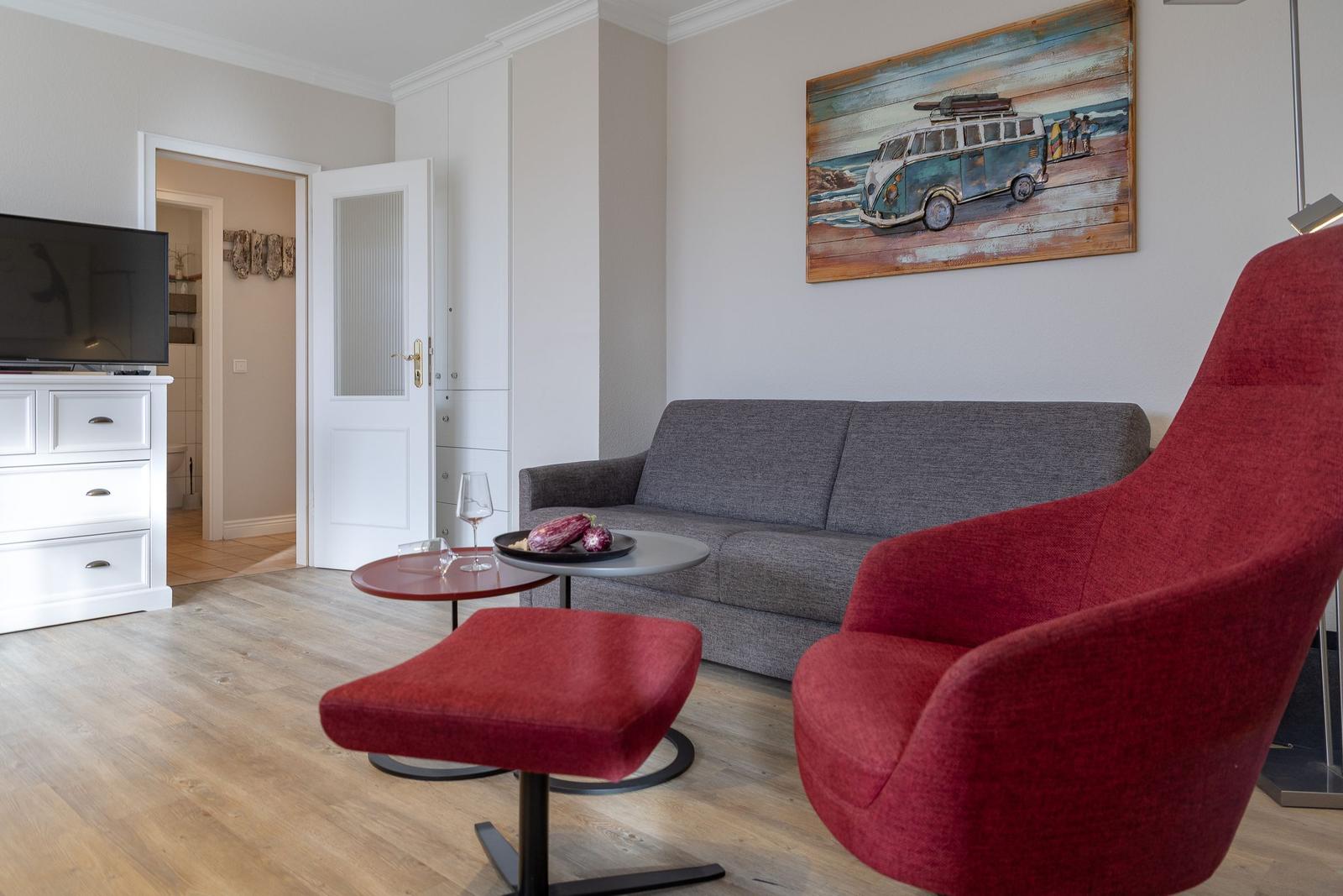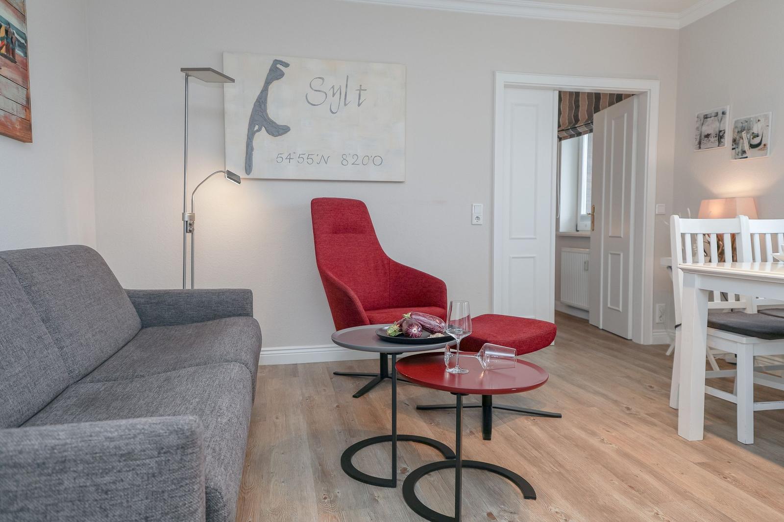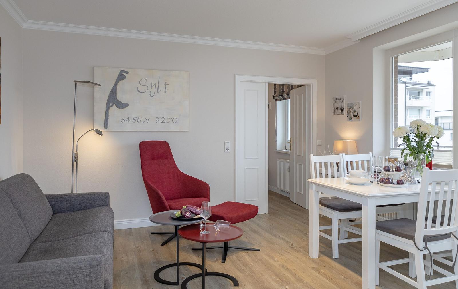 Die Ferienwohnung befindet sich in einem ruhigen Wohnviertel von Westerland, nur wenige Gehminuten vom Strand entfernt. Die Entfernung zum Strand beträgt etwa 800 Meter, was einen schnellen Zugang zum Meer und den vielen Freizeitmöglichkeiten am Wasser ermöglicht. Tippgeber für Wassersport und Strandaktivitäten sind in der Umgebung zu finden. Das Zentrum von Westerland, mit seinen zahlreichen Geschäften, Restaurants und Cafés, ist in rund 1,5 Kilometer erreichbar und bietet abwechslungsreiche Einkaufsmöglichkeiten. Für Naturfreunde liegt das nahegelegene Dünenschutzgebiet nur etwa 2 Kilometer entfernt und lädt zu ausgedehnten Spaziergängen ein. Darüber hinaus ist die Anreise sowohl mit dem Auto als auch mit öffentlichen Verkehrsmitteln gut möglich, da sich die nächste Bushaltestelle in der Nähe befindet. Diese Lage verbindet ruhiges Wohnen mit der Nähe zu beliebten Freizeitaktivitäten und sorgt somit für einen erholsamen Aufenthalt.