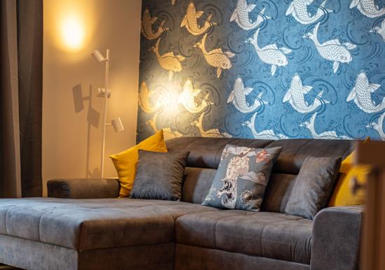 Das helle, modern-maritim eingerichtete Appartement Carl liegt in der 3. Etage. Es bietet zwei Schlafzimmer, einen großzügigen Wohnbereich mit Schlafcouch und Platz für bis zu 6 Personen. Besonders schön sind der Holzboden und der Ausblick über Westerland