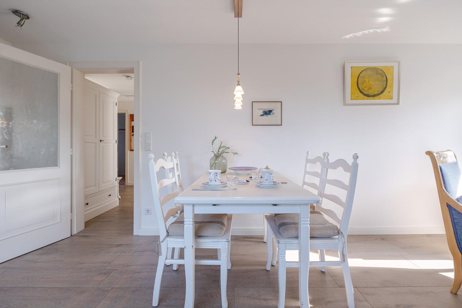Die Ferienwohnung bietet einen komfortablen Aufenthalt mit durchdachter Ausstattung. Sie verfügt über zwei geräumige Schlafzimmer, eines mit einem Doppelbett und eines mit zwei Einzelbetten, ideal für Paare oder Familien. Die separate Küche ist voll ausgestattet mit einem Elektro-/Gasherd, Geschirrspüler, Kühlschrank, Kaffeemaschine, Toaster und einer Gefriermöglichkeit, sodass sich jeder problemlos selbst versorgen kann. Das gemütliche Wohnzimmer lädt mit einem Sofa und einem Sessel zum Entspannen ein. Das moderne Badezimmer, ausgestattet mit einem Fenster, Duschbad, Haartrockner sowie Spiegel, sorgt für zusätzlichen Komfort. WLAN-Internet ist im gesamten Apartment verfügbar und die Wohnung ist allergikergeeignet. Ein Esstisch bietet Platz zum gemeinsamen Essen. Füllende Geschirrtücher, Geschirr und Besteck sind ebenfalls vorhanden. Ein Schreibtisch steht für Arbeitszwecke bereit. Diese Wohnung bietet die perfekte Grundlage für einen entspannten Urlaub.