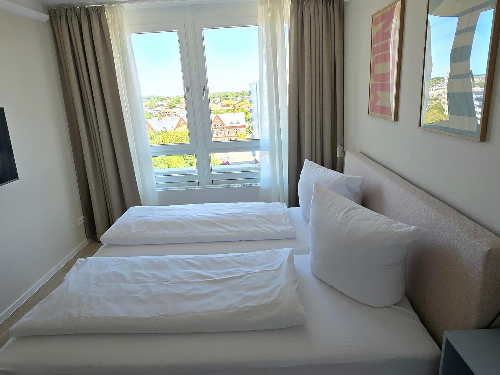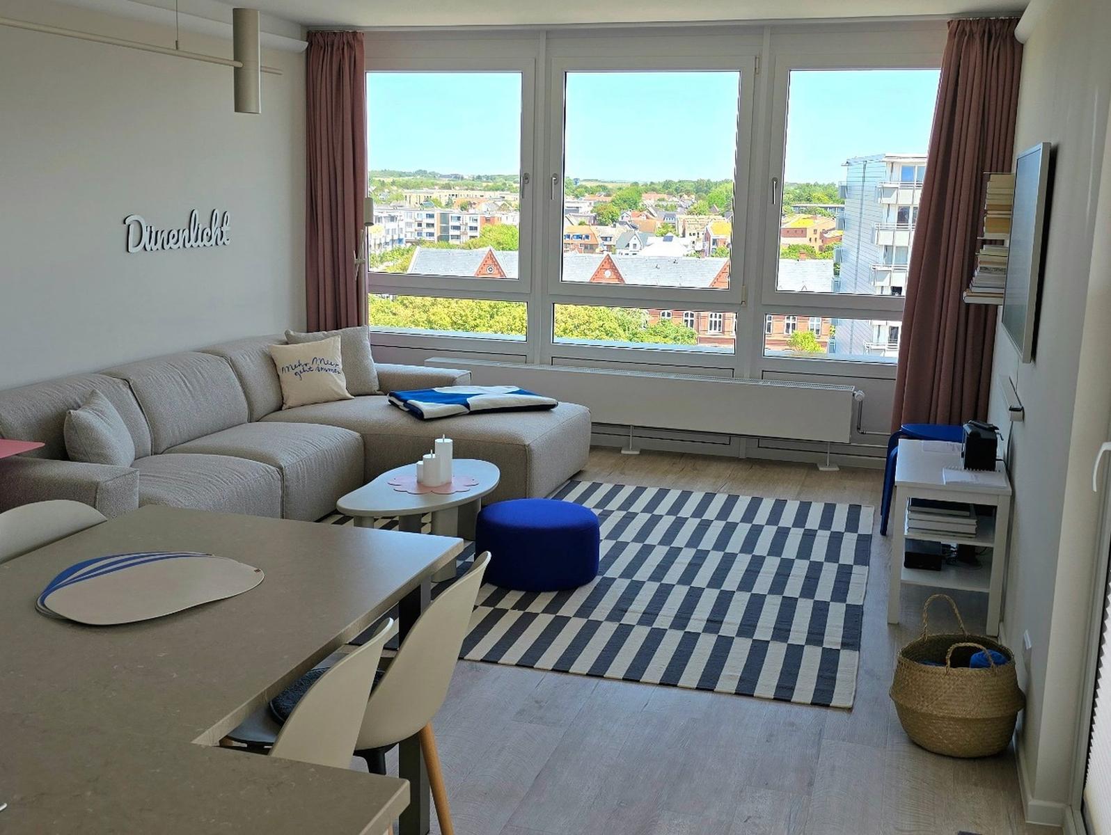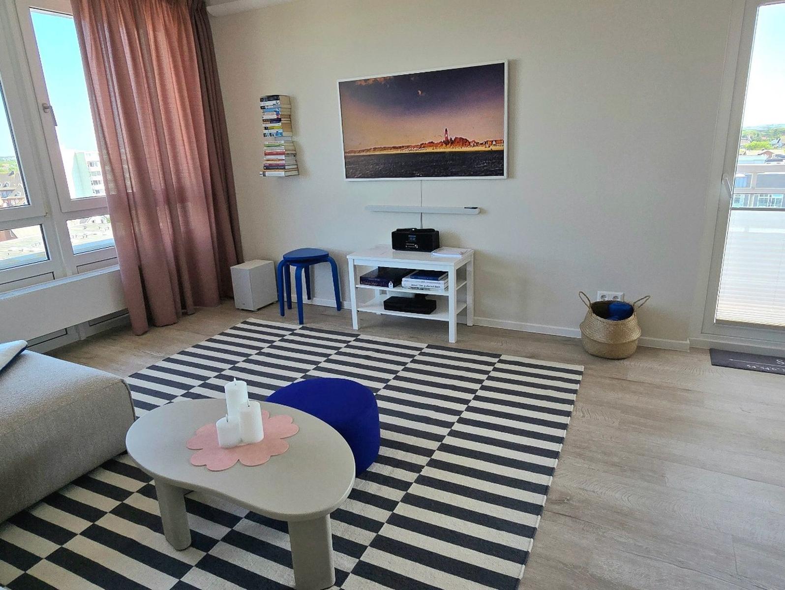 Willkommen im Apartment Dünenlicht – Ihre stilvolle Auszeit im Herzen von Westerland. Die frisch renovierte 3-Zimmer-Wohnung (94 m²) im 5. Stock mit Aufzug bietet bis zu vier Gästen viel Platz, Komfort, Ruhe und eine herrliche Aussicht über Sylt. Genießen Sie entspannte Stunden auf dem sonnigen, überdachten Südbalkon oder erkunden Sie Strand, Stadtzentrum, Cafés und Restaurants – alles in wenigen Minuten bequem zu Fuß erreichbar. Die Nichtraucherwohnung verfügt über zwei separate Schlafzimmer, ein modernes Bad mit Dusche und Badewanne sowie ein zusätzliches Gäste-WC. Die offene Küche ist sehr hochwertig ausgestattet (Induktionsherd, Backofen, Mikrowelle, Gefrierschrank, Toaster, Spülmaschine) und das Wohnzimmer lädt mit großem TV, Esstisch und gemütlichem Sofa zum Verweilen ein. Weitere Extras: schnelles WLAN, Magenta TV, Waschtrockner, Boxspringbett, Tiefgaragenstellplatz mit Platz für Fahrräder. Ein ideales Apartment auf Sylt für Paare oder Freunde, zentral, komfortabel, barrierearm.