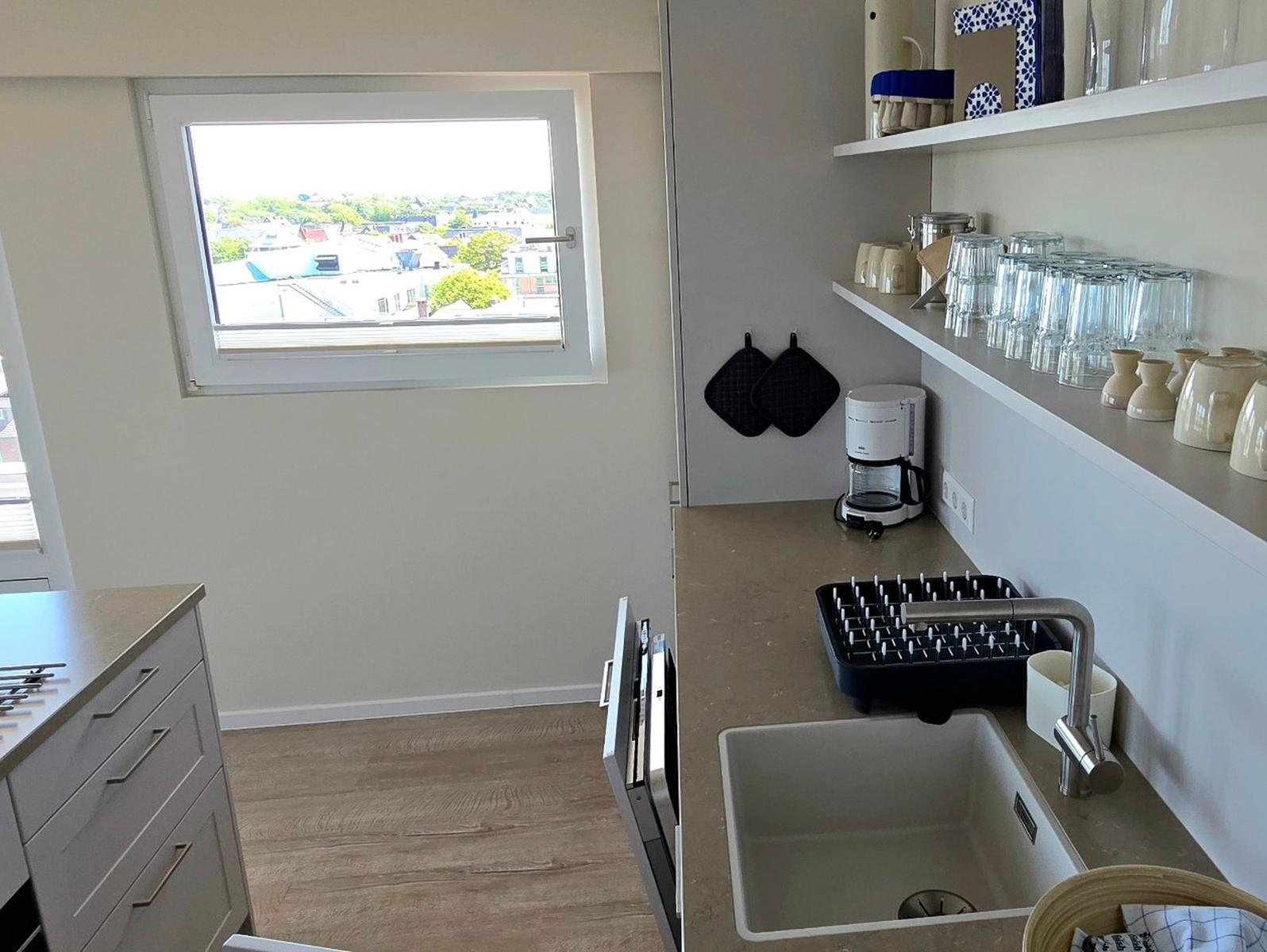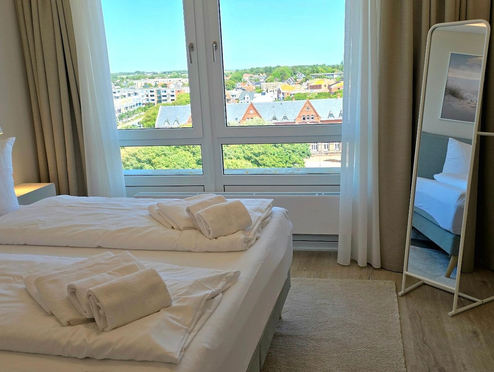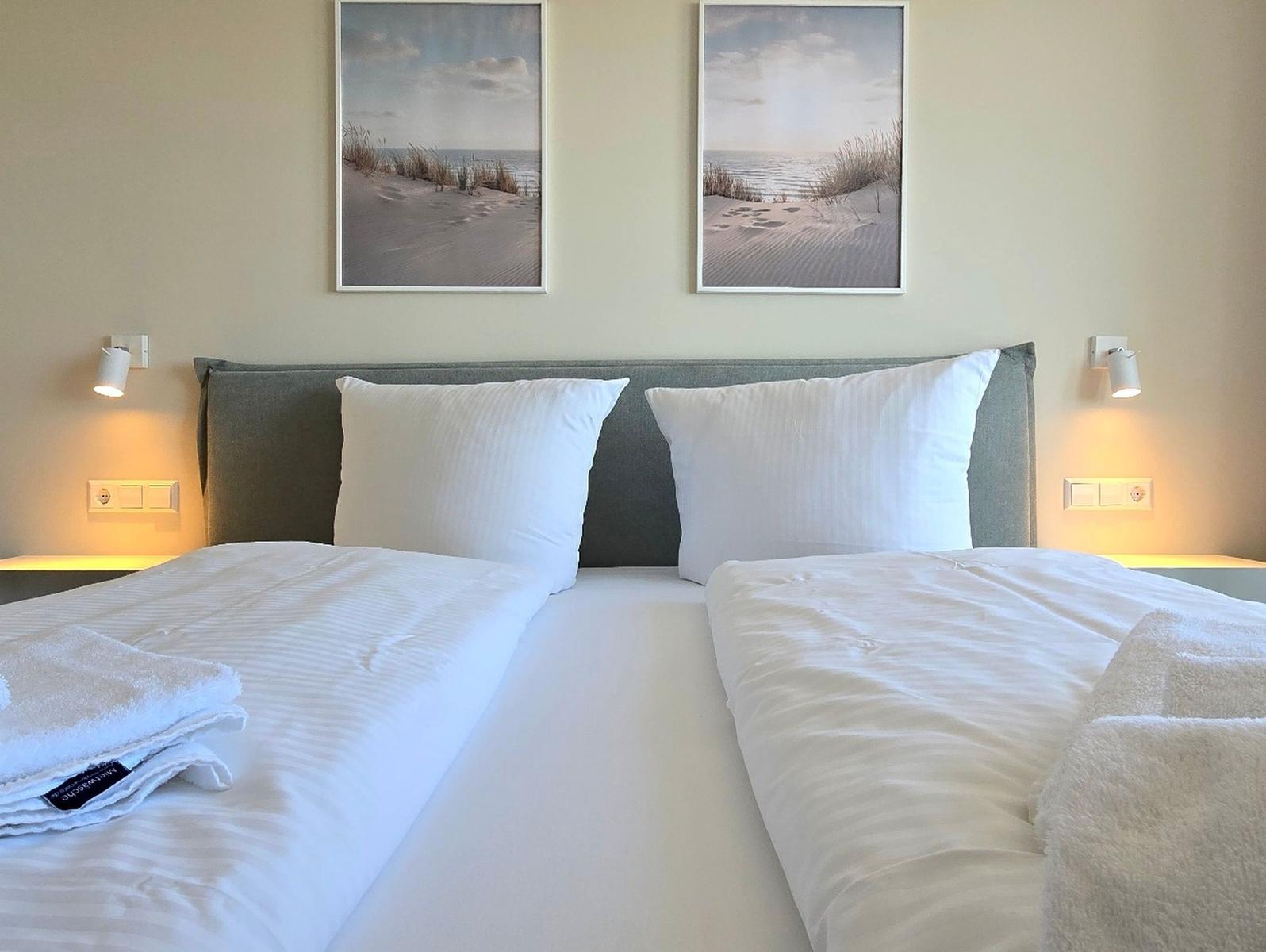 Willkommen im Apartment Dünenlicht – Ihre stilvolle Auszeit im Herzen von Westerland. Die frisch renovierte 3-Zimmer-Wohnung (94 m²) im 5. Stock mit Aufzug bietet bis zu vier Gästen viel Platz, Komfort, Ruhe und eine herrliche Aussicht über Sylt. Genießen Sie entspannte Stunden auf dem sonnigen, überdachten Südbalkon oder erkunden Sie Strand, Stadtzentrum, Cafés und Restaurants – alles in wenigen Minuten bequem zu Fuß erreichbar. Die Nichtraucherwohnung verfügt über zwei separate Schlafzimmer, ein modernes Bad mit Dusche und Badewanne sowie ein zusätzliches Gäste-WC. Die offene Küche ist sehr hochwertig ausgestattet (Induktionsherd, Backofen, Mikrowelle, Gefrierschrank, Toaster, Spülmaschine) und das Wohnzimmer lädt mit großem TV, Esstisch und gemütlichem Sofa zum Verweilen ein. Weitere Extras: schnelles WLAN, Magenta TV, Waschtrockner, Boxspringbett, Tiefgaragenstellplatz mit Platz für Fahrräder. Ein ideales Apartment auf Sylt für Paare oder Freunde, zentral, komfortabel, barrierearm.