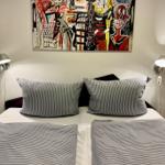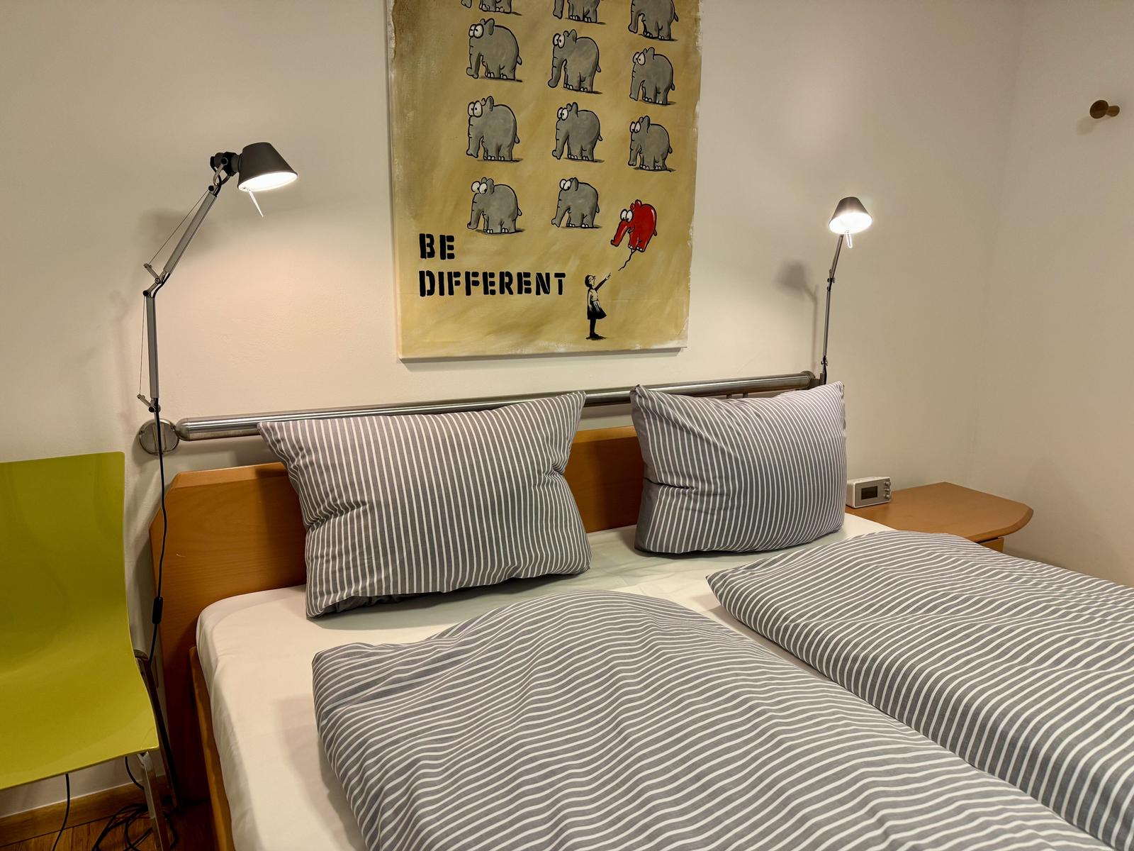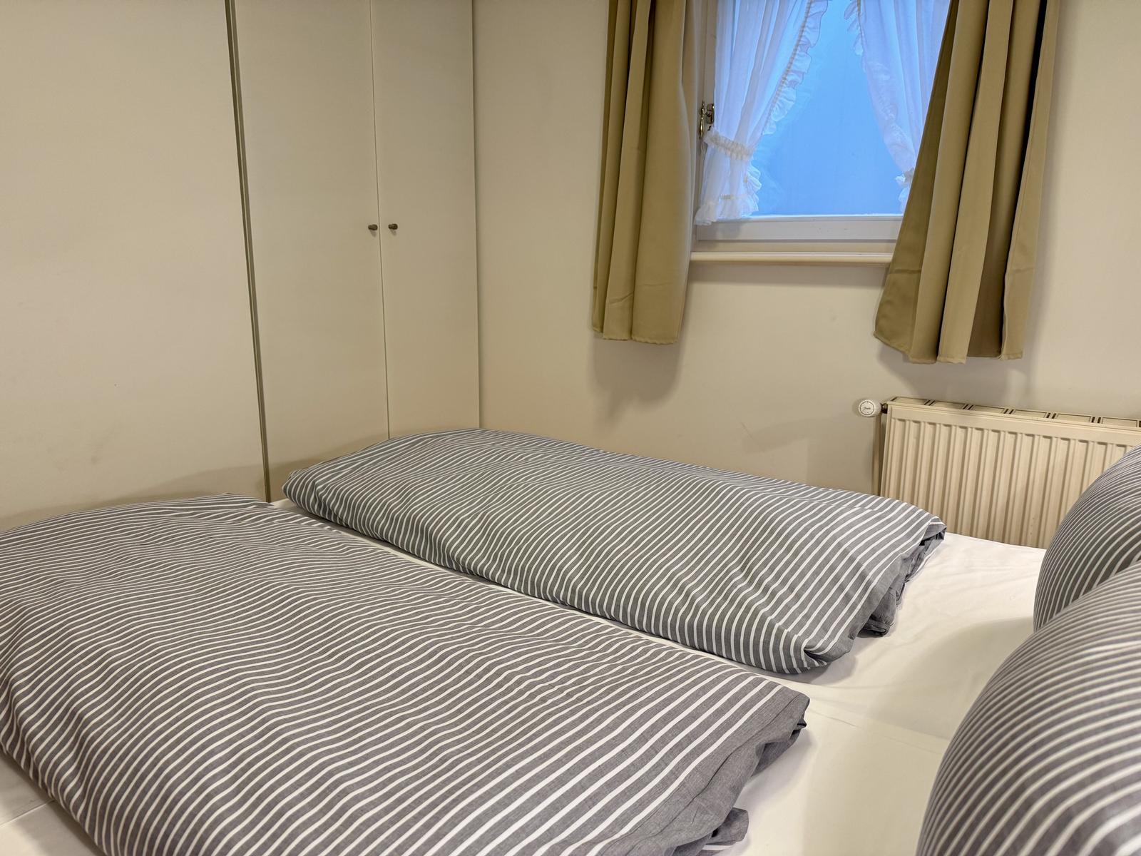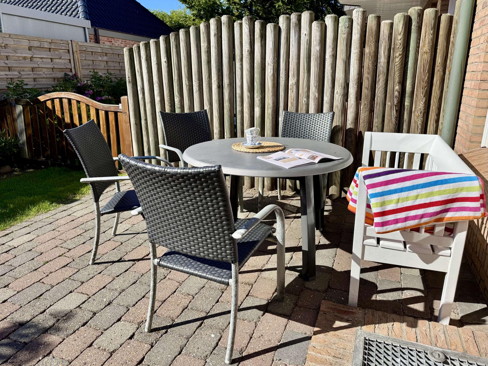 1 x bezogenes Bett, 2 x Handtücher, 1 x Badetuch, 1 x Duschvorleger und 1 x Geschirrtuch.