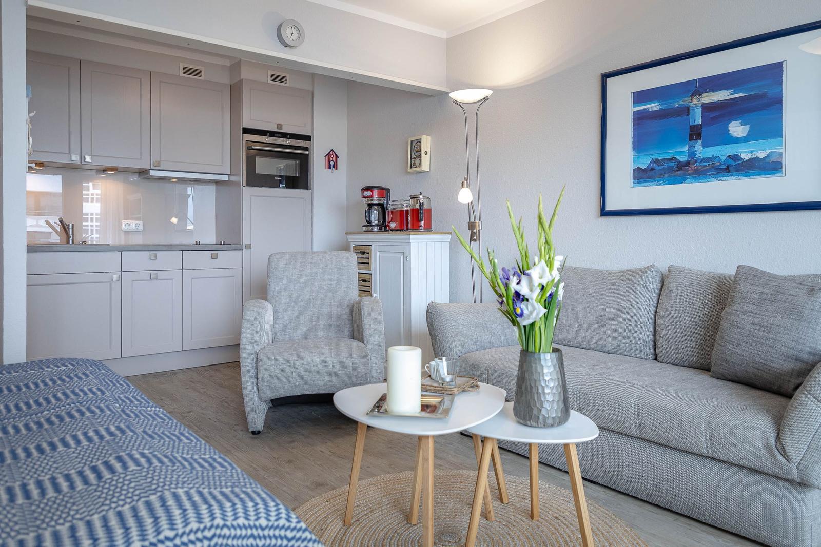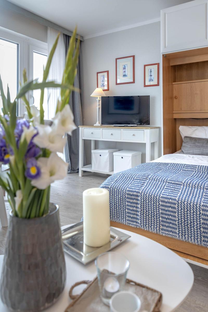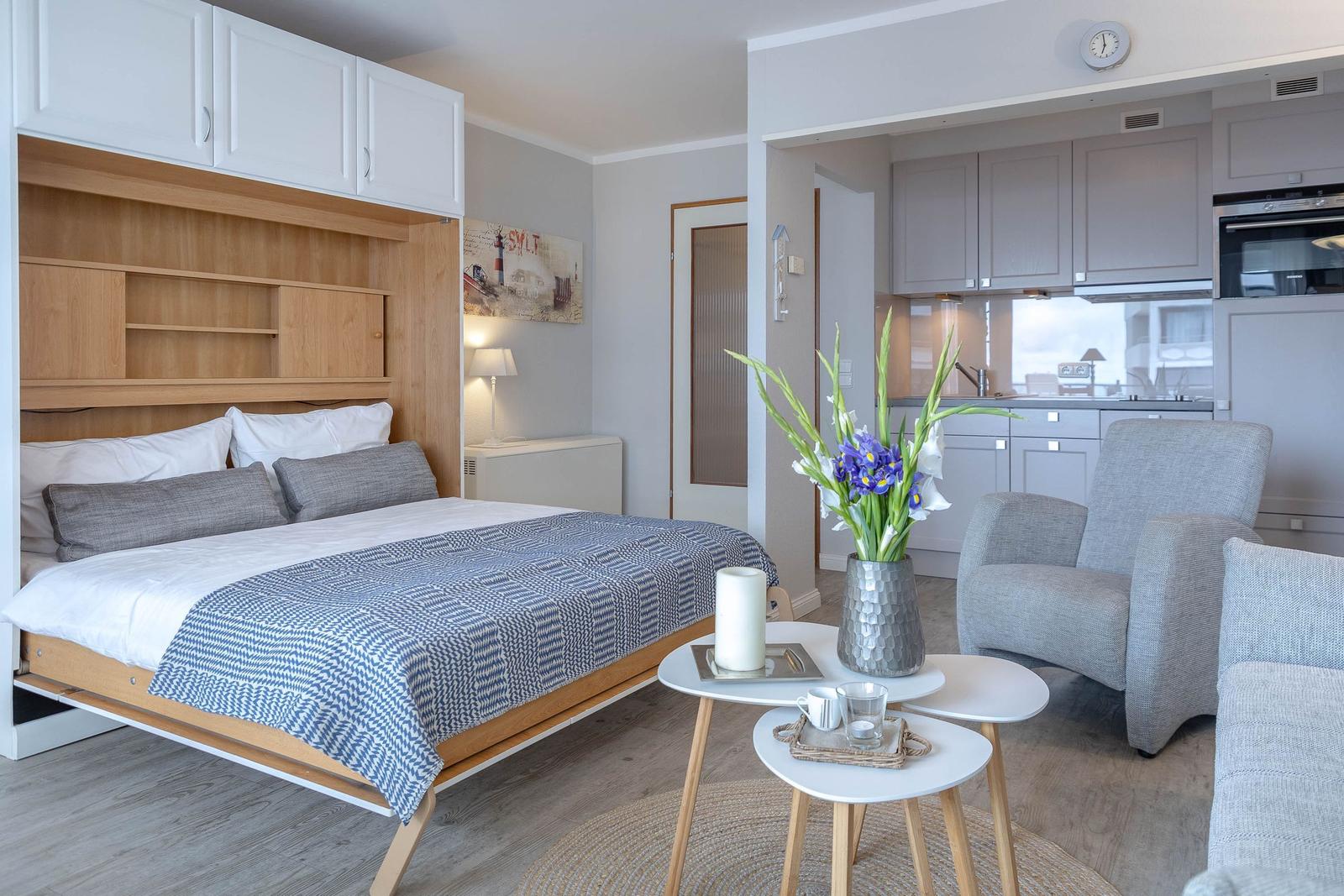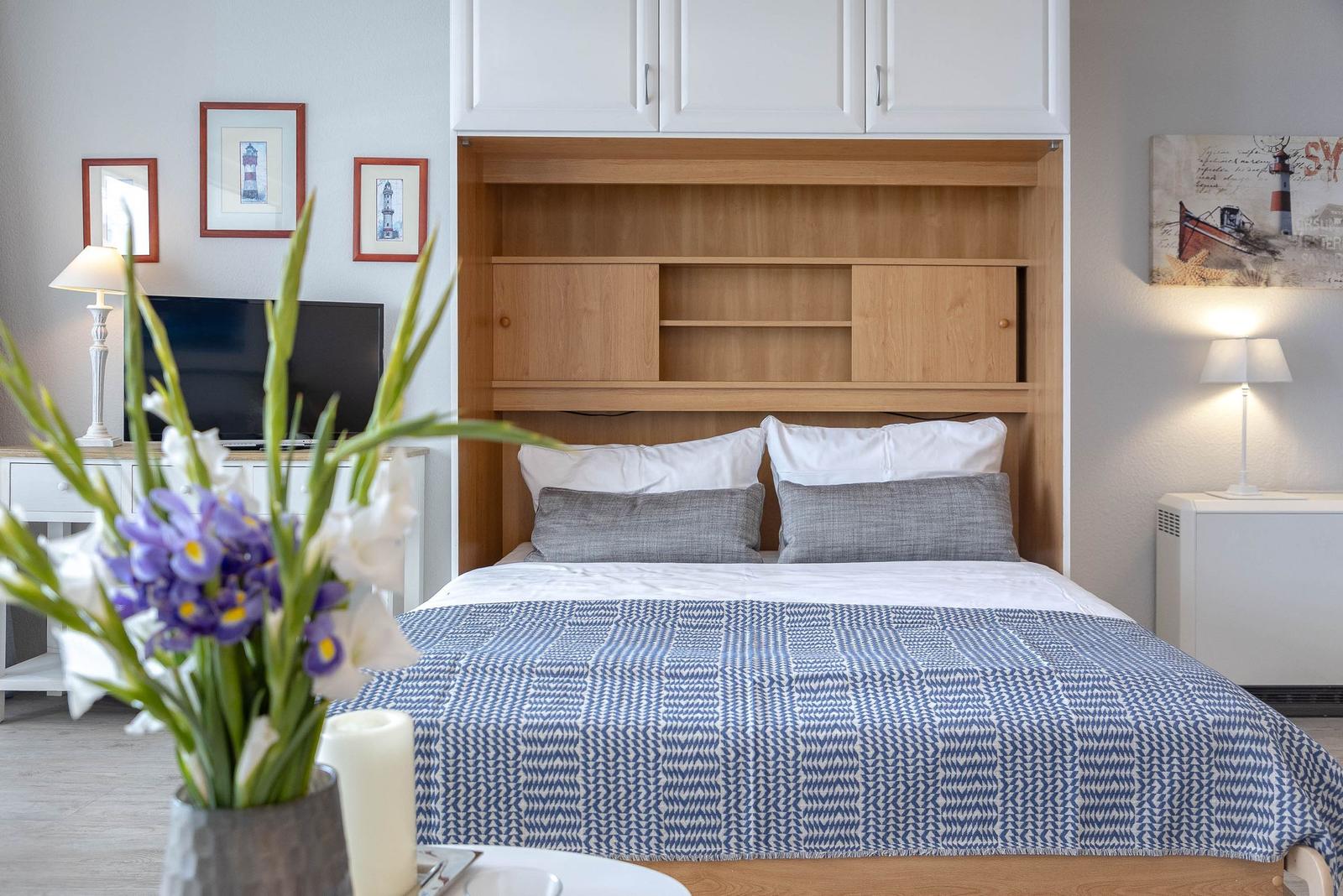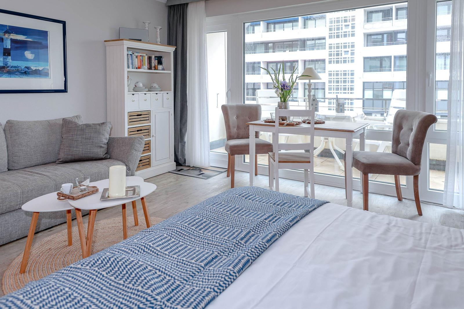 Die charmante 1-Zimmer-Wohnung für bis zu 2 Personen bietet modernen Komfort, direkt am Strand, mit Meerblick-Balkon und erstklassiger Lage für unvergessliche Urlaubsmomente.
