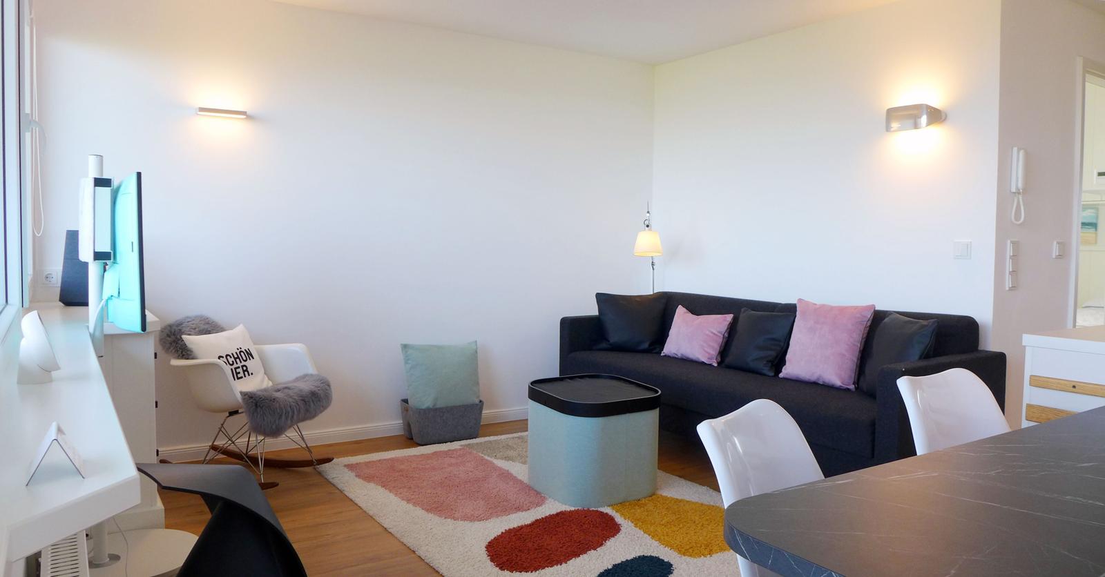 Dieser kleinen Wohlfühloase fehlt es an nichts; sie ist mit Annehmlichkeiten wie USB-Anschlüssen in den Steckdosen, einem professionellen Lichtkonzept mit dimmbaren Design-Leuchten sowie einer gleichermaßen funktionalen wie gemütlichen Inneneinrichtung perfekt geplant worden.