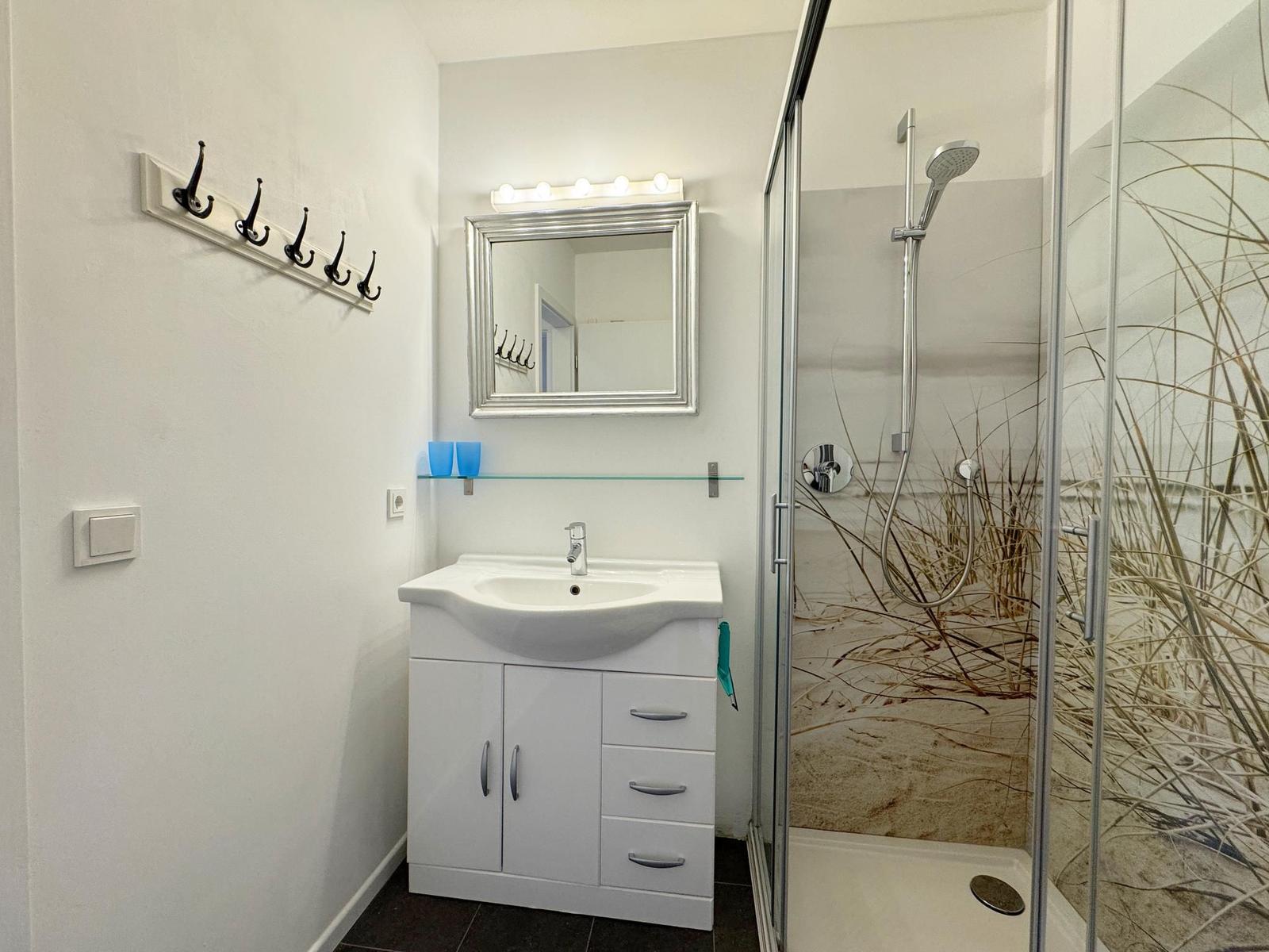 In der durchdacht eingerichteten Wohnung sind auch längere Aufenthalte problemlos möglich, zumal sich in der reichlich ausgestatteten Küche gut kochen lässt und Wäsche im Keller gewaschen und getrocknet werden kann. Das Duschbad wurde kürzlich neu gestaltet.