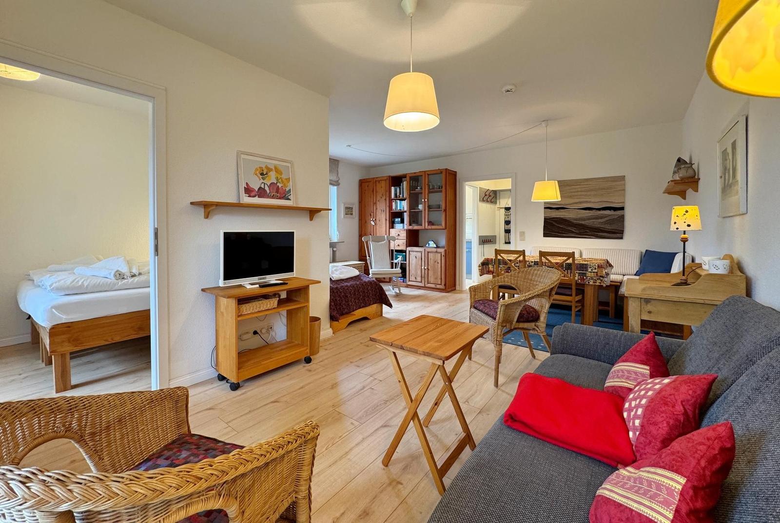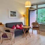 Unsere gemütliche, helle Ferienwohnung bietet auf 48 qm Raum für 2 bis 3 Personen. Am Südrand von Westerland gelegen, ist sie vom Bahnhof zu Fuß zu erreichen (Entfernung 900 Meter). Ihr besonderer Vorzug ist eine nach Süden gelegene Loggia, auf der die Gäste sich vor Wind geschützt aufhalten können, auch wenn es an anderer Stelle zugig und kühl ist.