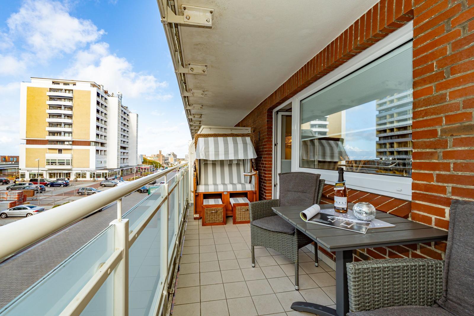 Die Dünenkoje App.205 bietet Ihnen eine komfortable Ferienwohnung auf Sylt, direkt an der Andreas-Dirks-Straße in zentraler Lage von Westerland. Auf ca. 30 m² finden bis zu zwei Gäste ideale Voraussetzungen für einen erholsamen Aufenthalt – sei es für Paare, Alleinreisende oder Geschäftsreisende, die Sylt hautnah erleben möchten. Die unmittelbare Nähe zum Strand – nur 100 Meter trennen Sie von Sand und Meer. Der möblierte Balkon mit Strandkorb zählt zu den besonderen Vorzügen dieses Appartements. Das Zentrum von Westerland erreichen Sie in wenigen Gehminuten, ebenso wie Supermärkte, Restaurants, Einkaufsmöglichkeiten sowie Ärzte, Banken und öffentliche Verkehrsanbindungen.