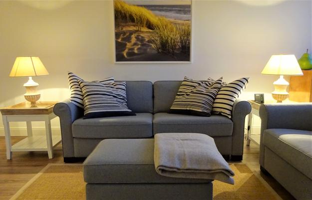 Geschmackvoll und gemütlich und der Strandübergang in Sichtweite! Sehr gepflegte, komfortable Wohnung mit geschütztem Westbalkon und Blick Richtung Dünengürtel und den ca. 150 m entfernten Übergang zum Brandenburger Strand, eigener Parkplatz inklusive.